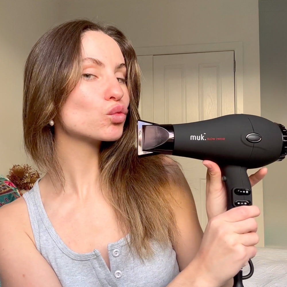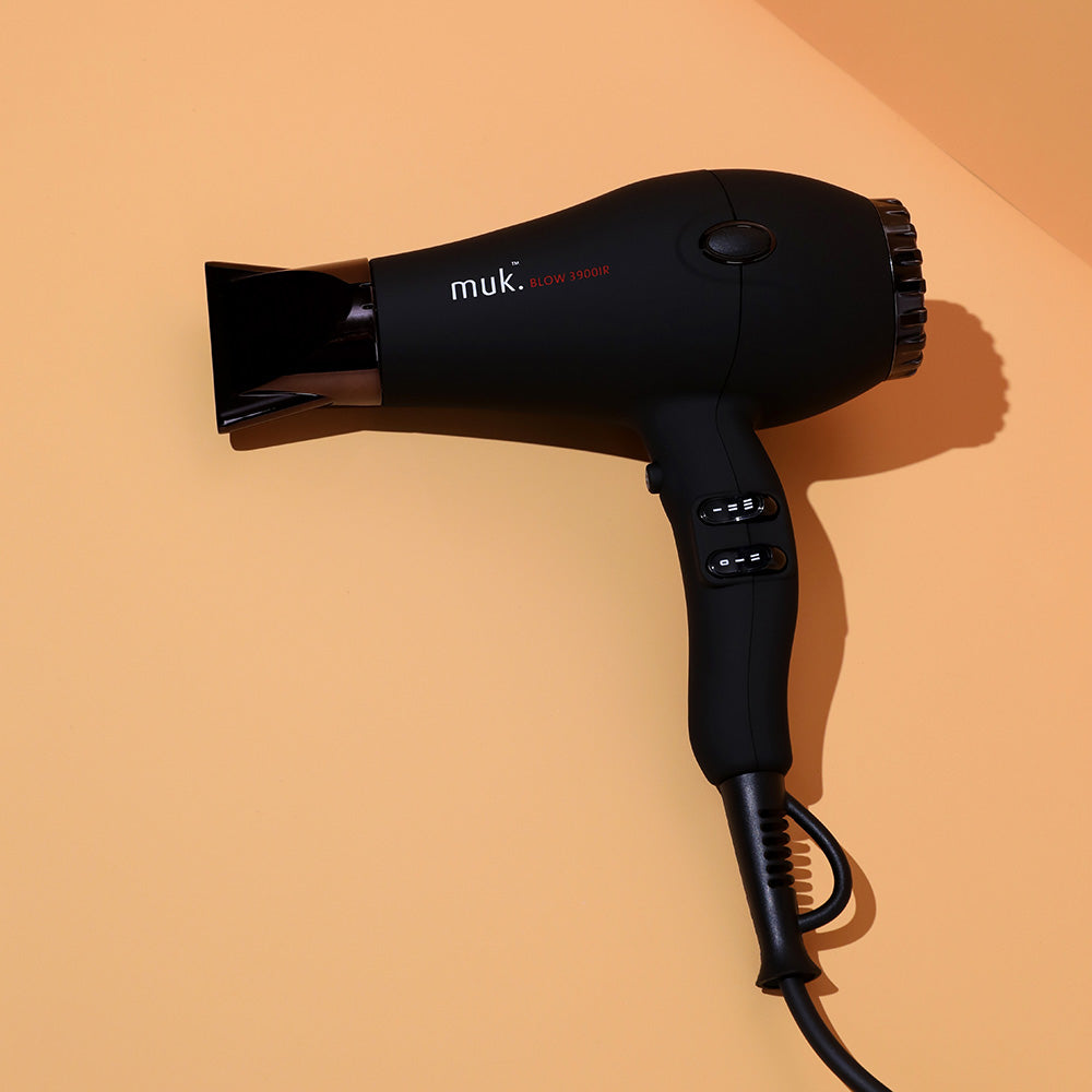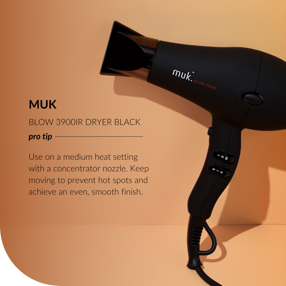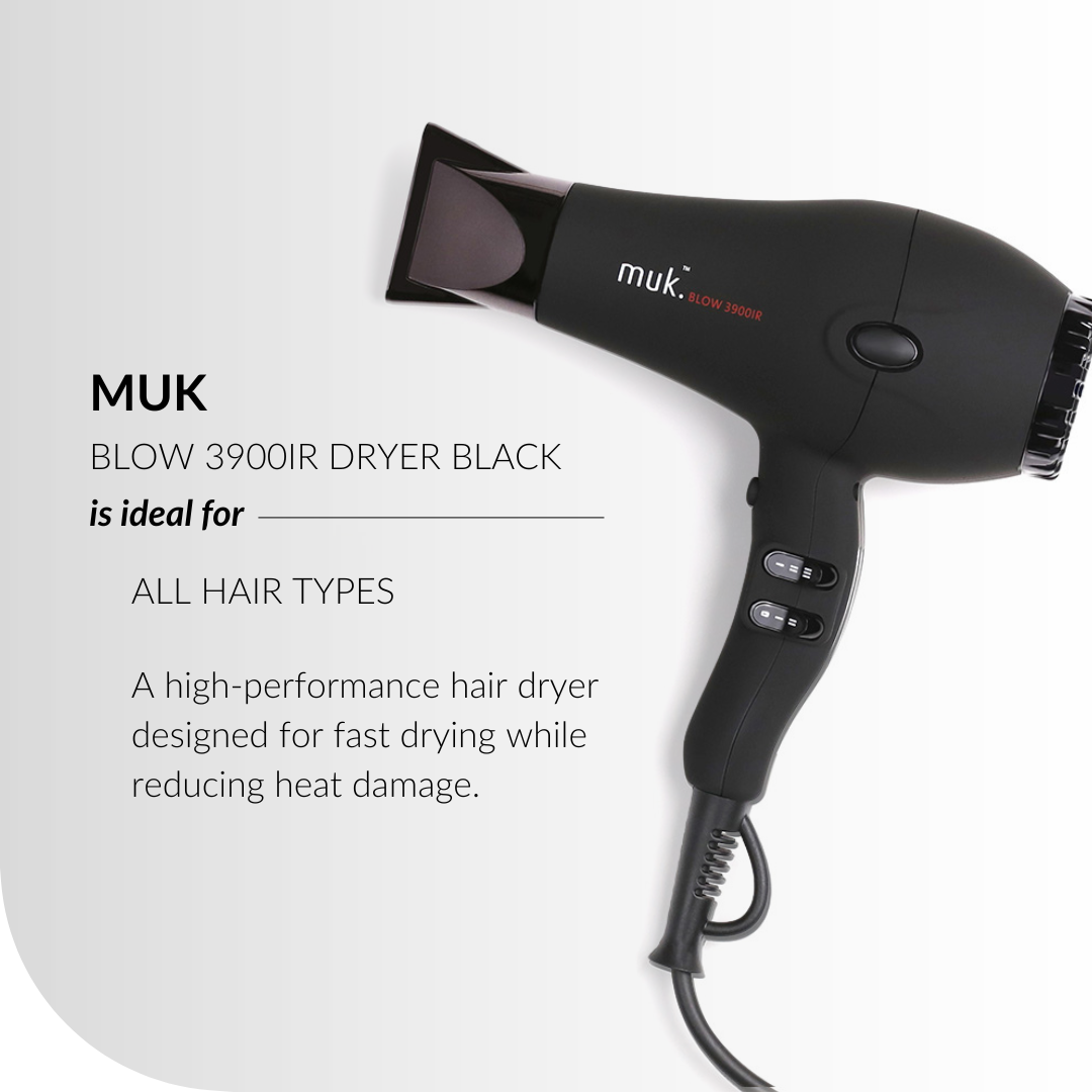 Dry hair gently and quickly with the super sleek and professional muk Blow 3900IR 2300 Watt Professional Hairdryer. The ergonomic and lightweight design makes drying hair that much easier, offering amazing shine, moisture balance and protection.