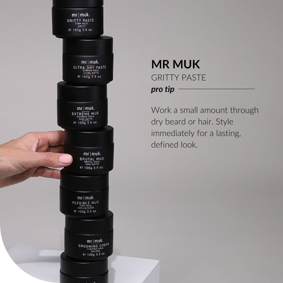 Your key to archi-textural styling, right here, right now. A firm hold finishing paste with grit galore ideal for creating and re-working roughed up styles without any flaking. Super strong hold and texture off the richter scale. Water soluble so washes out easily.