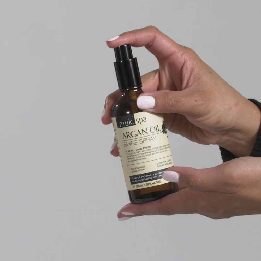 Time saving while styling the muk Spa Argan Oil Shine Spray also protects the hair from thermal and environmental damage. The hair is conditioned, hydrated, smooth and left with a high shine.